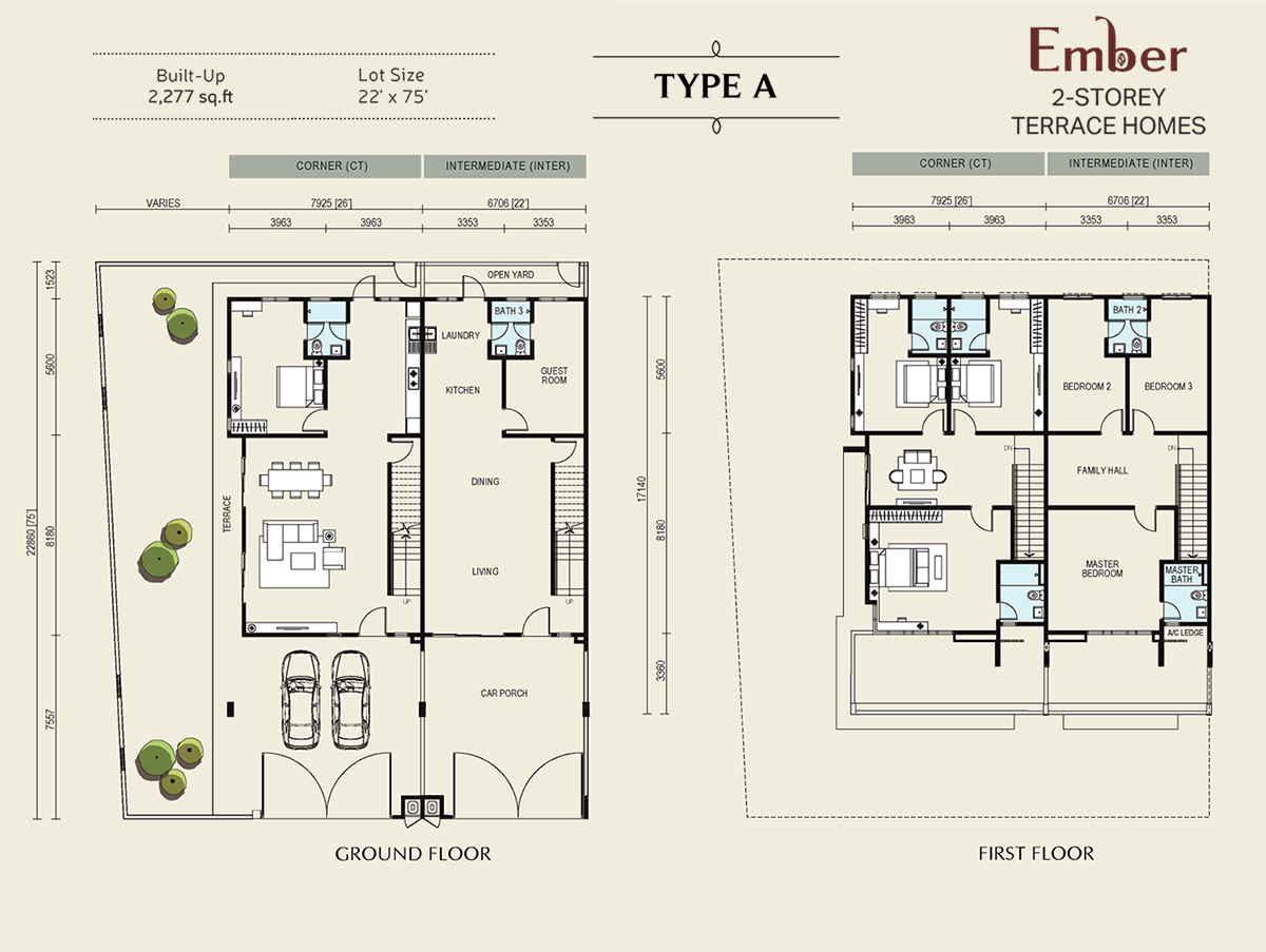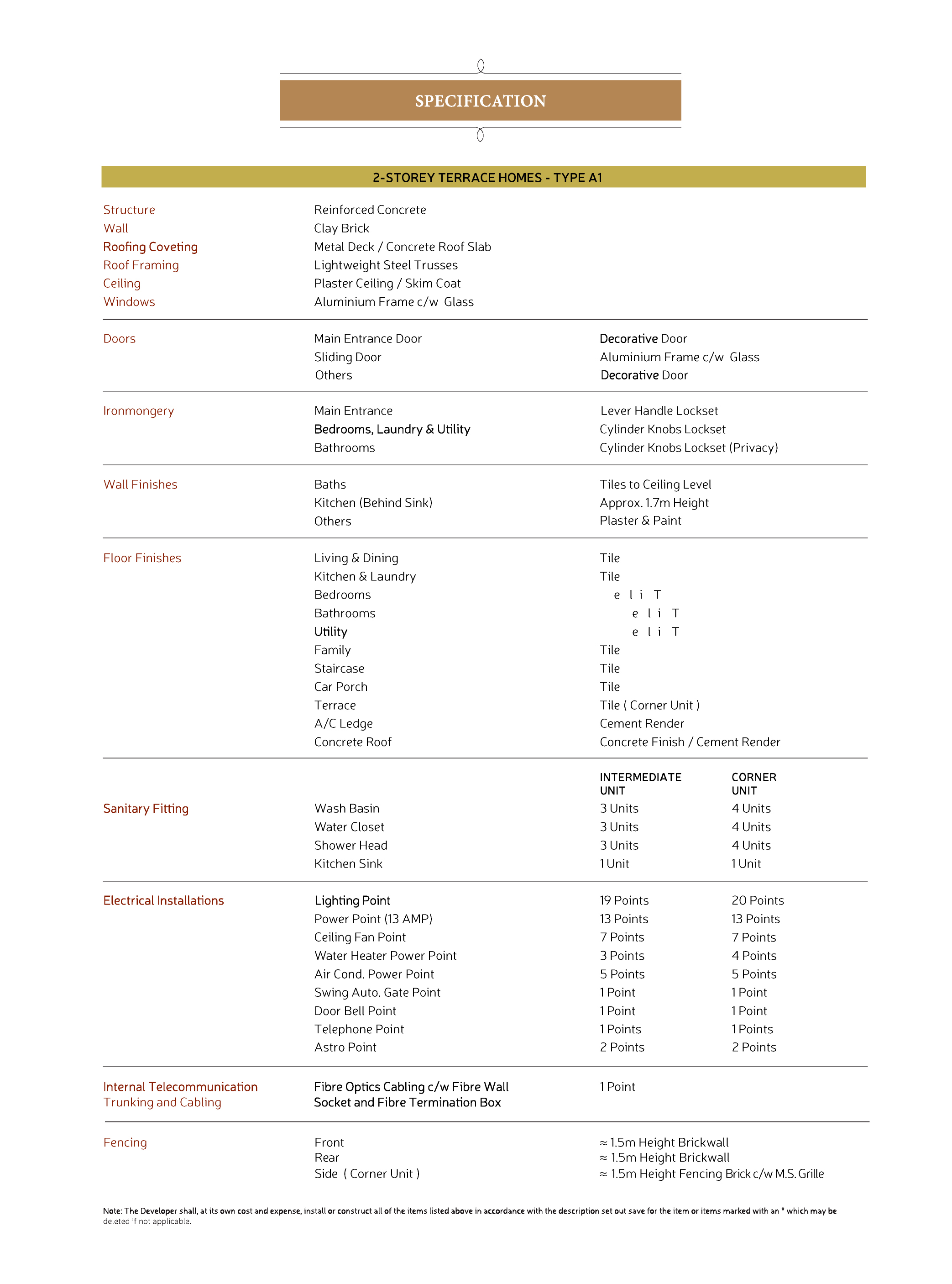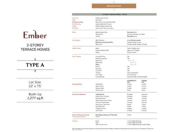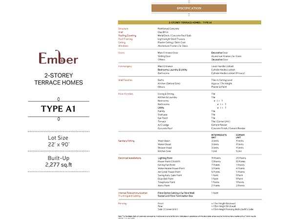 Lot Size: 20'x70' (Type A), 20’x80’ (Type A1)